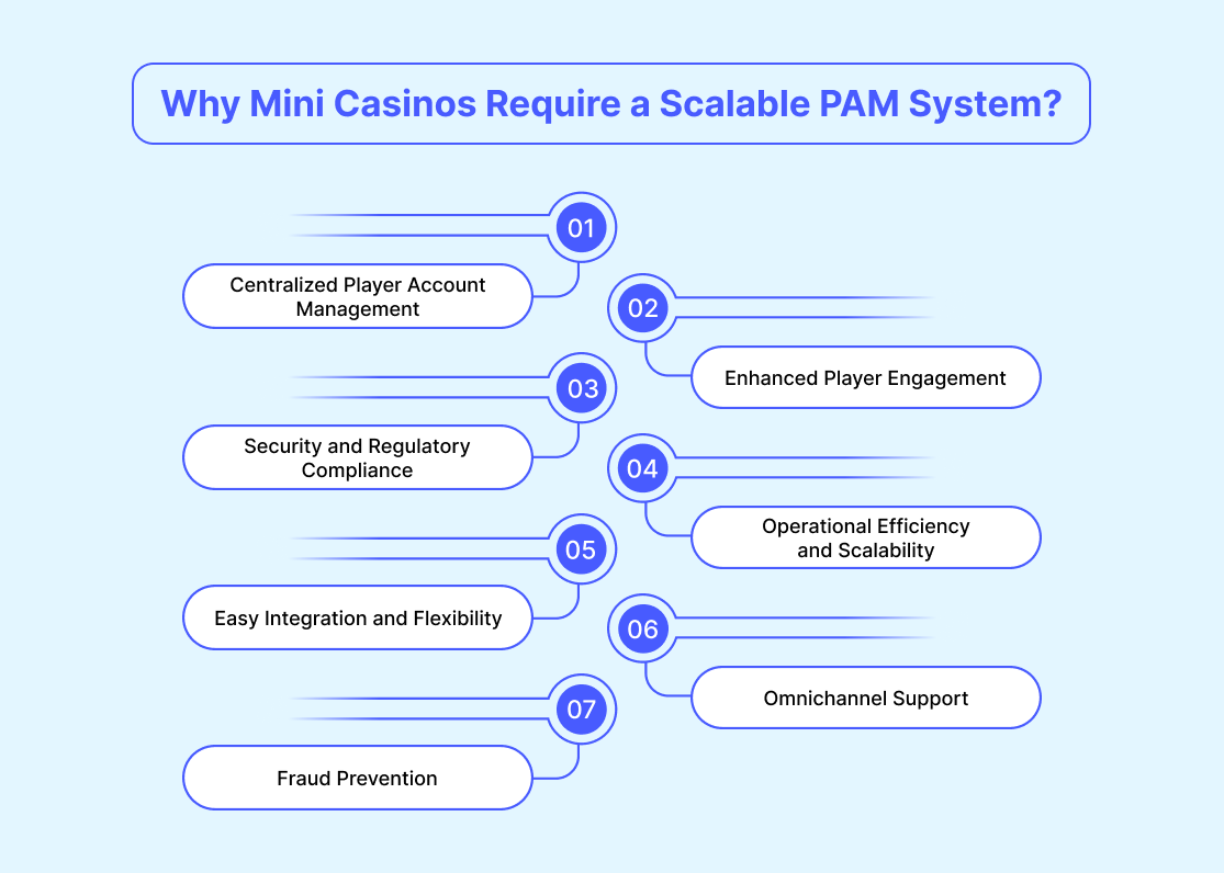 Mini casinos prioritize mobile-friendly, fast-paced gameplay, and a scalable PAM system ensures a consistent player experience by seamlessly managing accounts across all devices and platforms.
